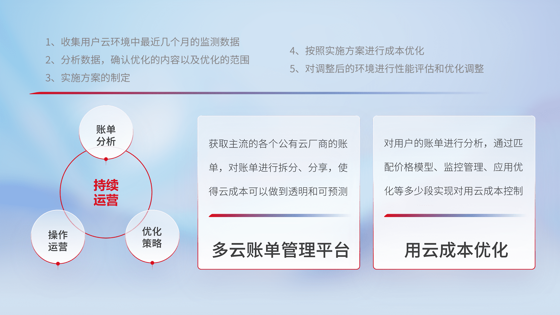 监控业务系统资源开销,,,,对资源的消耗精确计量,,,实现费用的透明化管理,,,,不断提升资源使用率,,,,调整资源购买方式,,降低资源费用成本,,,用云成本可预测、、、用云费用可优化,,云资源配额有据可依。。